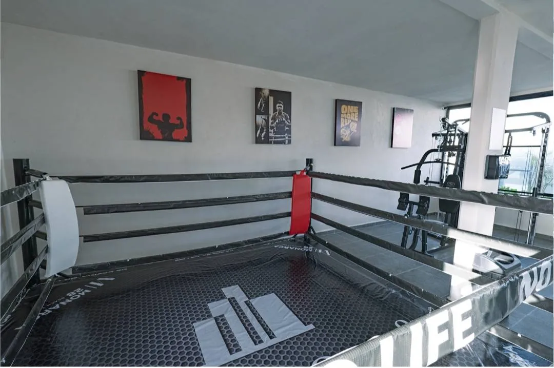 The development's amenities include a pool, gym, boxing ring, and 24-hour security.